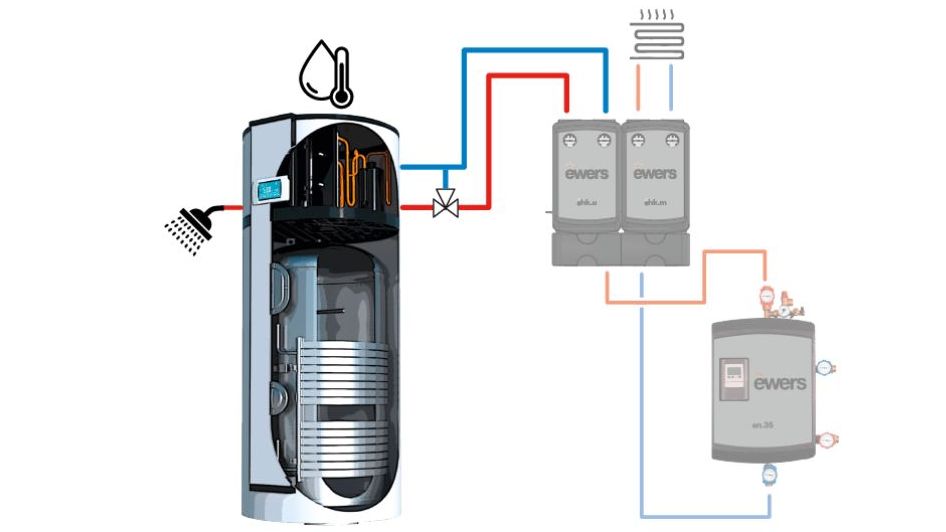 Ewers hat sein Nahwärme-Produktsortiment erweitert und bietet nun neben Nahwärme-Übergabestationen auch den Trinkwasserbooster ETB.200 an, der eine moderne Wärmepumpe mit einem 200-Liter-Brauchwasserspeicher kombiniert. Das Trinkwasser-Erwärmungssystem ist für Niedertemperaturnetze geeignet mit Vorlauftemperaturen unter 50 °C und Rücklauftemperaturen unter 20 °C. Mithilfe einer „intelligenten“ Steuerung lasse sich die Temperatur im Nahwärmenetz im Sommer gezielt absenken – bis hin zur vollständigen Abschaltung, wodurch die Effizienz der Brauchwasser-Wärmepumpe erheblich steige. Sie eigne sich für Modernisierungen und Neubauten und trage dazu bei, Energiekosten zu senken und den ökologischen Fußabdruck zu reduzieren.